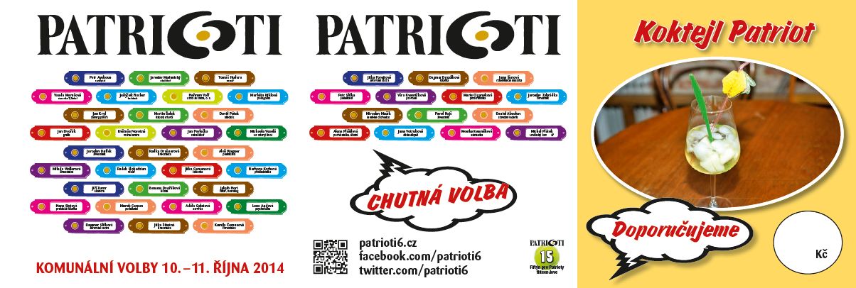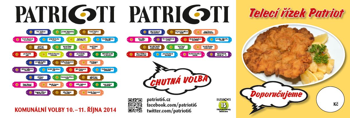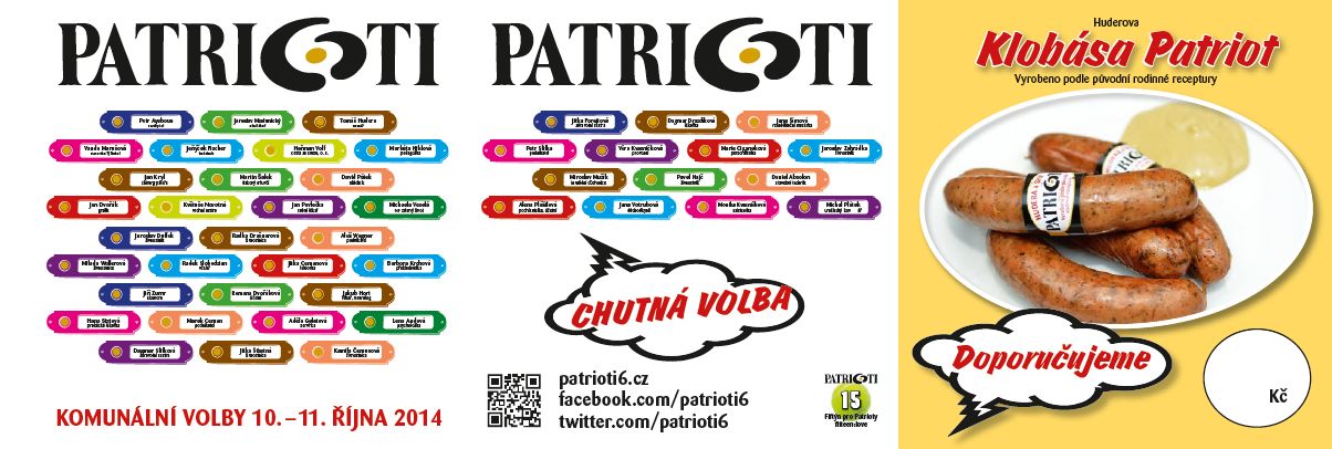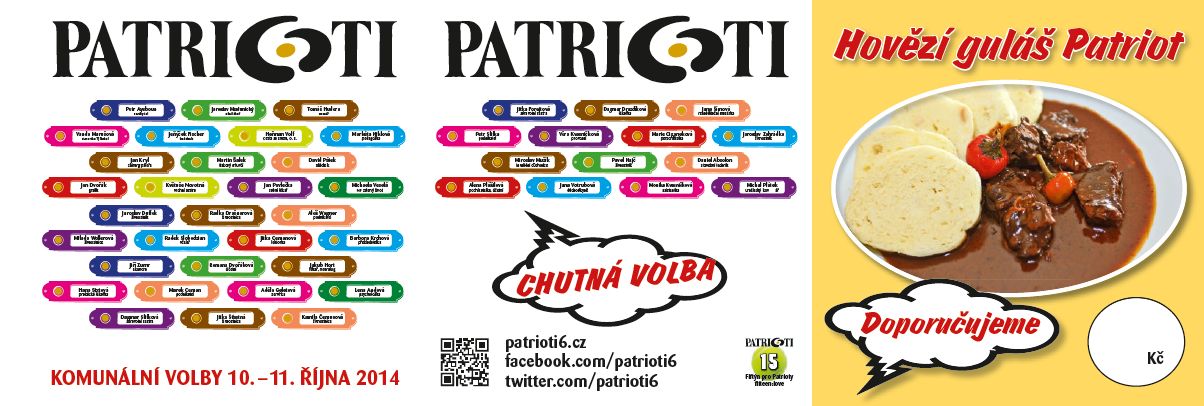 V předvolební kampani spoléháme na kontaktní styl, setkávání s lidmi, sociální sítě a webové stránky, pro uživatele chytrých telefonů a tabletů jsme připravili i mobilní aplikaci. A protože si myslíme, že humor má být nedílnou součástí každé kampaně, s malou nadsázkou nabízíme lehce upravené známé pravidlo, že nejen láska, ale i volební přízeň prochází žaludkem. Proto bychom byli rádi, kdyby nabízené Menu Patriotů chutnalo všem.